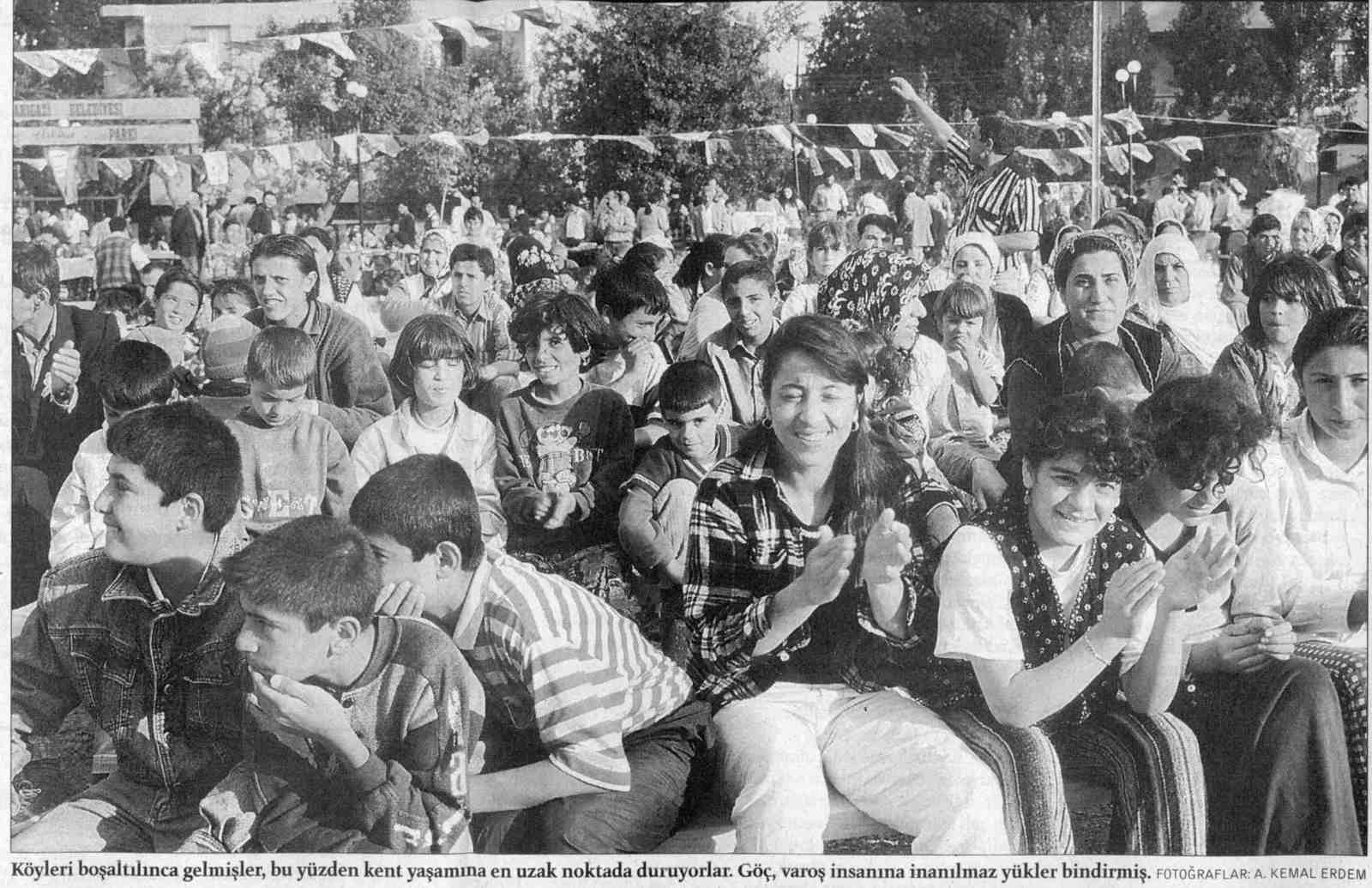 « On peut vivre à Istanbul sans jamais voir Taksim » : en mai 1996, Yeni Yüzyıl fait découvrir à ses lecteurs une pauvreté saisissante. A Bagcılar, dans la banlieue ouest, une famille d'Eruh (département de Siirt) qui a fui la guerre dix mois auparavant, vit avec onze enfants dans une pièce humide. Ils n'ont pas de meubles, sauf un vieux réfrigérateur. Le père gagne 32 millions de lires par mois comme homme de peine, tout juste de quoi payer le loyer et nourrir les enfants de pain, vingt pains par jour. « Au village, disent-ils, on avait tout ce qu'il nous fallait ; on n'achetait jamais rien, ni viande, ni fruits, ni légumes, ni bois... » (Milliyet, 14 septembre 1998).