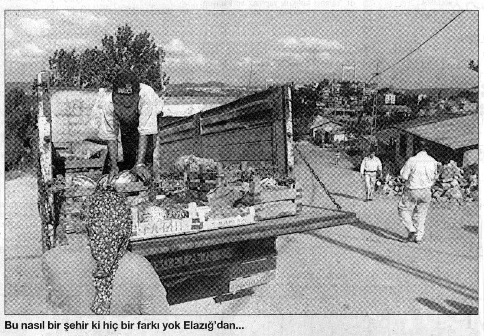 En 1996, par exemple, Berat Güncikan publie un reportage dans Cumhuriyet sur les enfants des quartiers pauvres et lointains. Un jeune étudiant alévi kurde qui témoigne de ses conditions de vie exige l'anonymat car, dit-il, « vivre dans ce quartier vous stigmatise ». La légende d'une des photos est ainsi formulée : « Quelle ville ! Il n'y a aucune différence avec Elazığ! » Au premier plan, un marchand ambulant propose ses pastèques sur la benne d'une camionnette. Le long de la ruelle que ne parcourt aucune voiture, un alignement de bicoques sans étage a poussé parmi des tas de moellons et une végétation naissante. Ce n'est pas un bidonville, mais c'est la pauvreté, tout près du pont sur le Bosphore dont les piles, visibles à l’arrière-plan, ont été intégrées dans le champ de l'image pour authentifier le lieu de prise de vue (Cumhuriyet, 27 août 1996).