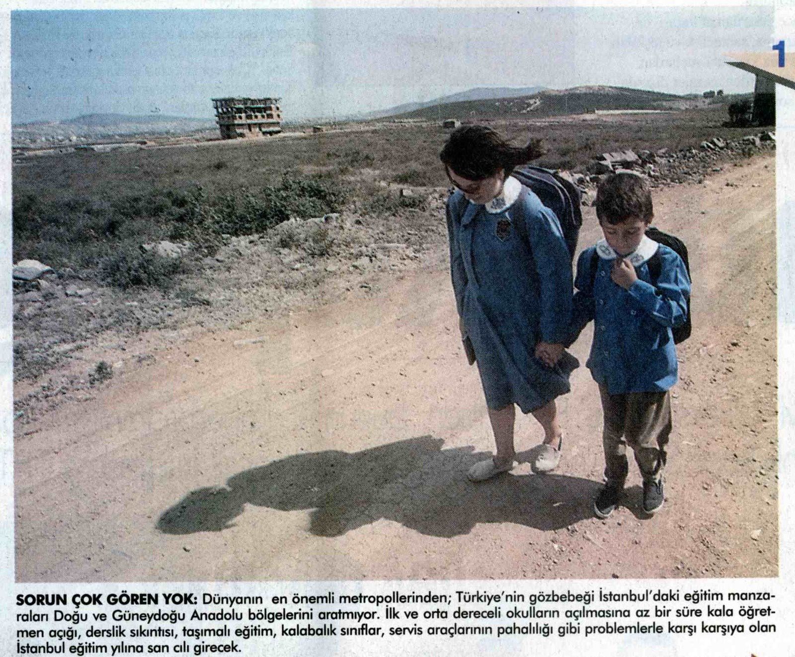 Dans un autre reportage sur le quartier de Maltepe (banlieue est) publié un an plus tard, Zaman répondait à nouveau sans ambages à la même question : « Il n'y a pas de différence entre Istanbul et l'Est » ; les enfants sont dans des classes de 70 à 100 élèves, ou alors ils travaillent (Zaman, 9 septembre 1998).
