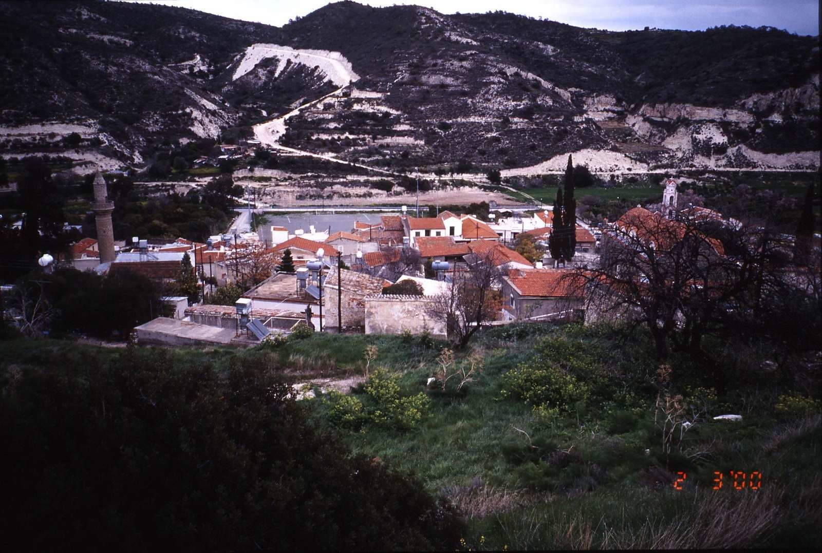 Deux villages anciennement mixtes, comportant église et mosquée. A gauche, Agios Theodoros (Çayırova, Chypre du nord; photo E.C. 2002. A droite, Kalavassos (partie sud de Chypre, photo E.C. février 2000)